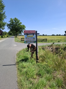 Start und Ziel war um jeweils 12h: Thielenkamp / Ecke Bäckerweg. Genau am kleinen, feinen „weißen Strich“.