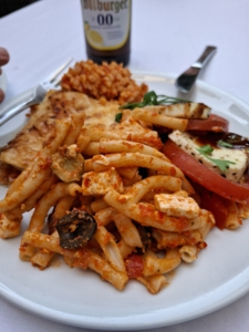 Kai (siehe auch oben) versorgt uns kurz nach Mitternacht tatsächlich mit einer warmen Mahlzeit. Ein Wahnsinn. Eine dreiviertel Stunde später fährt er bis früh in den Morgen fast 5h lang mit uns mit.